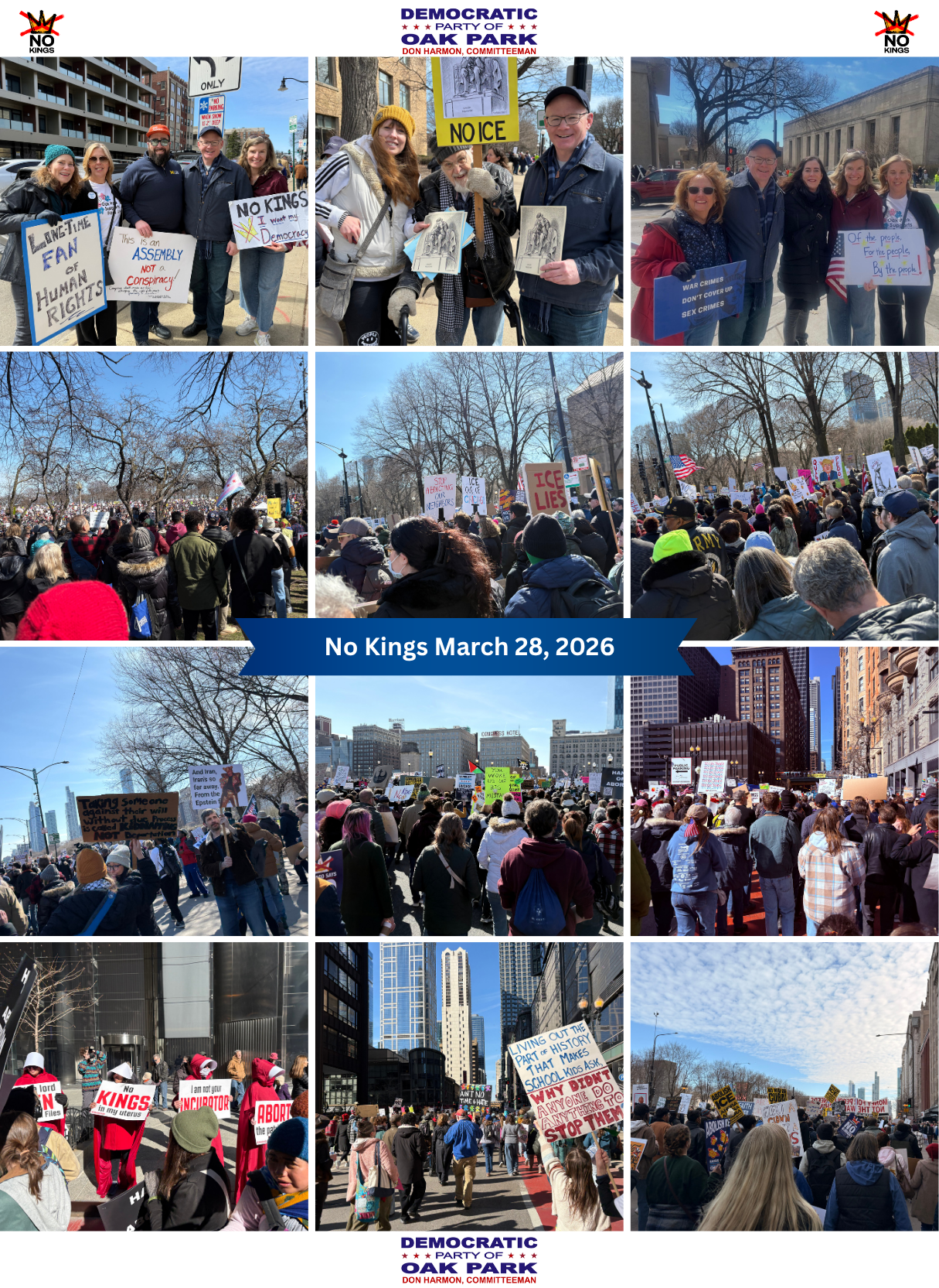 Thank you to everyone who was able to participate in No Kings! The pictures above are from the No Kings rallies in Oak Park and Chicago.